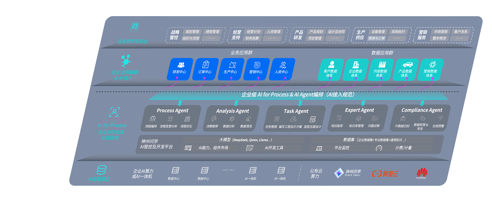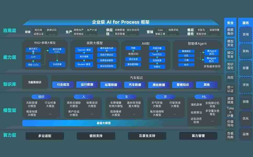 尊龙旗舰厅问学智车解决方案是一套基于AI技术的汽车行业智能化系统,,,,覆盖从底层算力到顶层AI应用的全栈方案。。。。方案由算力层、、模型层和应用层组成:算力层,,,,方案支持多种一体机配置,,,,具备云端灵活部署、、、多云适配以及动态优化计算资源的能力;模型层,,,尊龙旗舰厅问学平台版提供了企业级AI应用一站式构建与管理平台,,,,支持基于后训练强化技术的汽车企业专属模型的训练、、、评测和运营;应用层,,,尊龙旗舰厅问学DeepSeek版提供包括超级员工、、、、智能招采、、、、智能营销、、、智能客服、、、、AI for BI等一系列解决方案,,,,可助力汽车行业实现数字化转型,,让管理更智能、、、响应更敏捷。。
