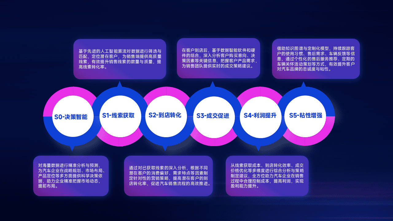 通过拓宽潜在客户来源、、、、优化线索分配并提高到店转化率,,以增强销售效率。。。同时,,,利用线索数据不断优化分析模型,,有效提升转化率,,,,扩大营销影响力。。